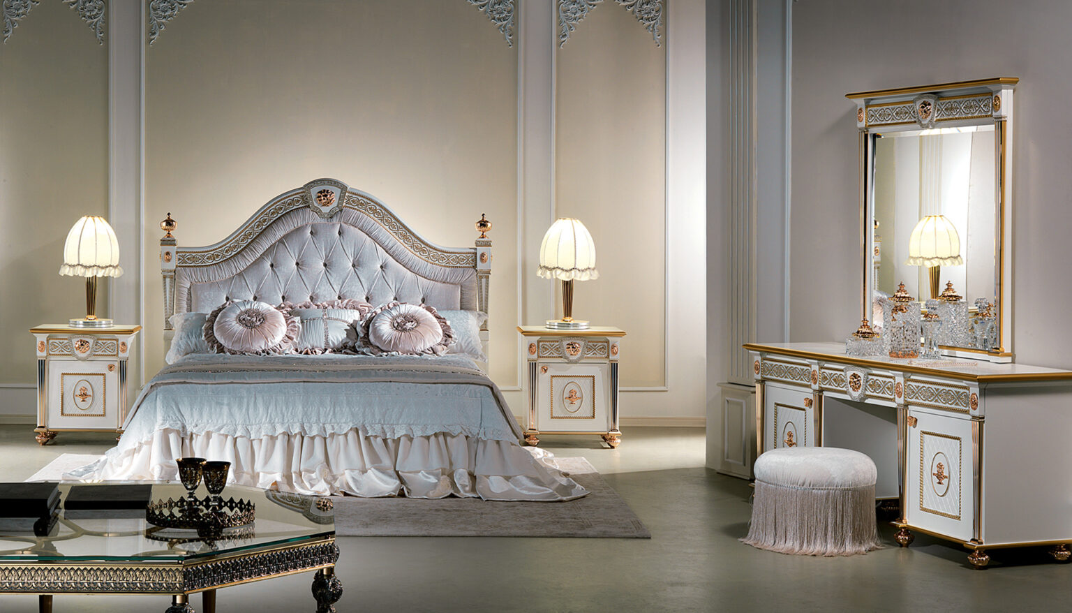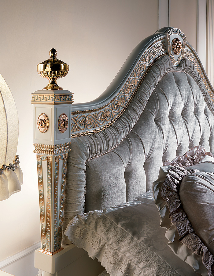 Королевское величие и неприкрытая роскошь, которыми отличается спальня Albinoni от компании Angelo Cappelini из Италии, непременно очаруют настоящих ценителей красоты и невероятного комфорта. Каждый элемент гарнитура уникален. Сложные конструкции изголовья и изножья повторяются в оформлении оригинальных прикроватных тумбочек, комода, туалетного столика. Удивительная по красоте кружевная ручная резьба обрамляет элементы кровати, боковые панели предметов мебели. Грациозные изгибы изголовья и изножья, фигурные ножки одновременно пафосные и невероятно уютные и нежные, дарят спальне чудесный комфорт и шик, что непременно порадует любителей роскоши. -
