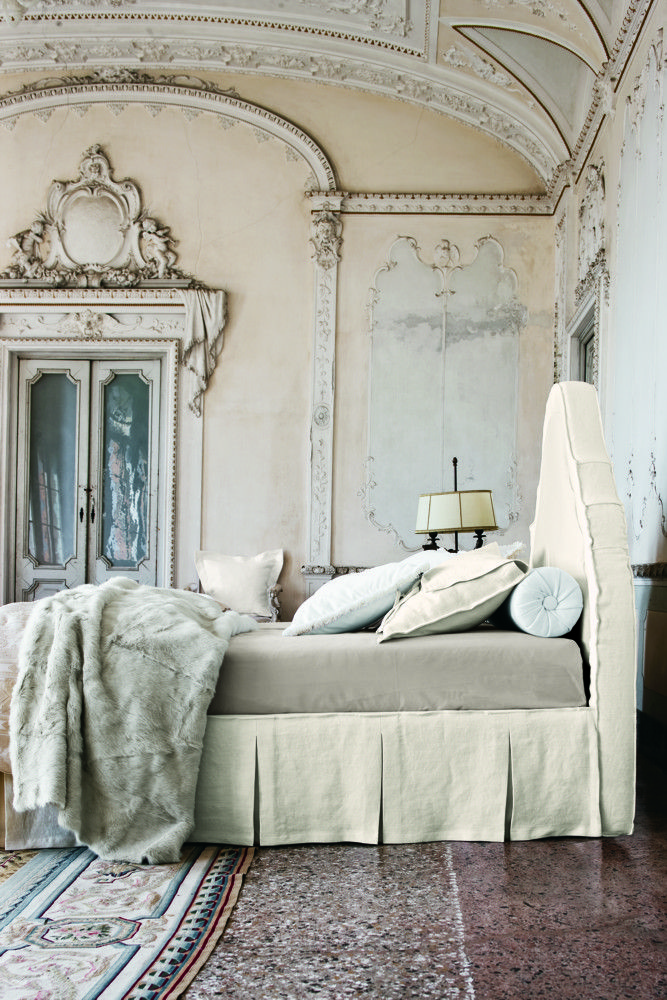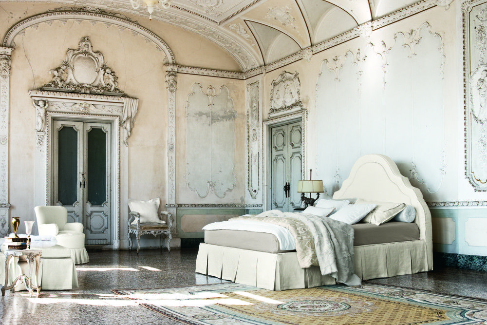 Нежная, изящная спальня Bizet от компании Angelo Cappelini из Италии станет замечательной находкой для почитателей истинного комфорта и элегантной роскоши. Искусная ручная резьба обрамляет сложное, фигурное мягкое изголовье, служит окантовкой основе. Покрытие золоченой фольгой превращает ее в достойное украшение, придает нотки величия гарнитуру. Роскошная ткань обивки и пастельный светлый кремовый оттенок мебели идеально сочетаются друг с другом, обеспечивая спальне сладкую, волшебную негу уюта и тепла. Нежные цвета гарантируют спальне тот чудесный комфорт, который необходим для полноценного отдыха. -