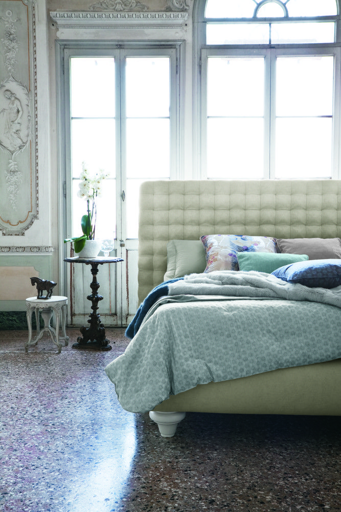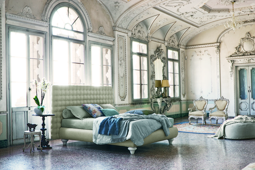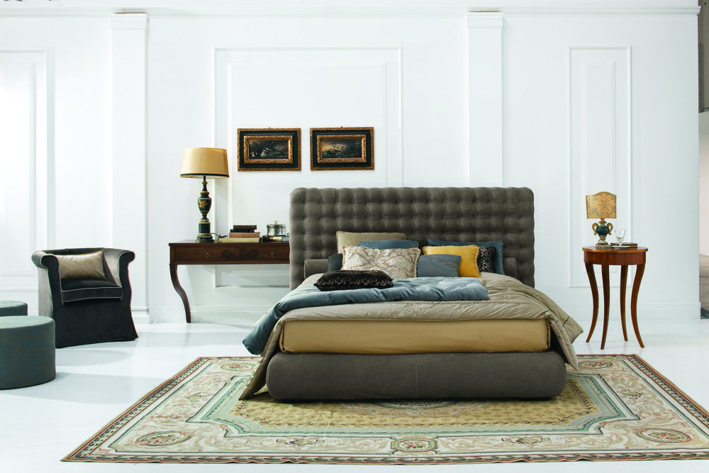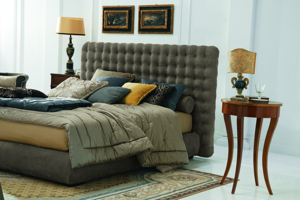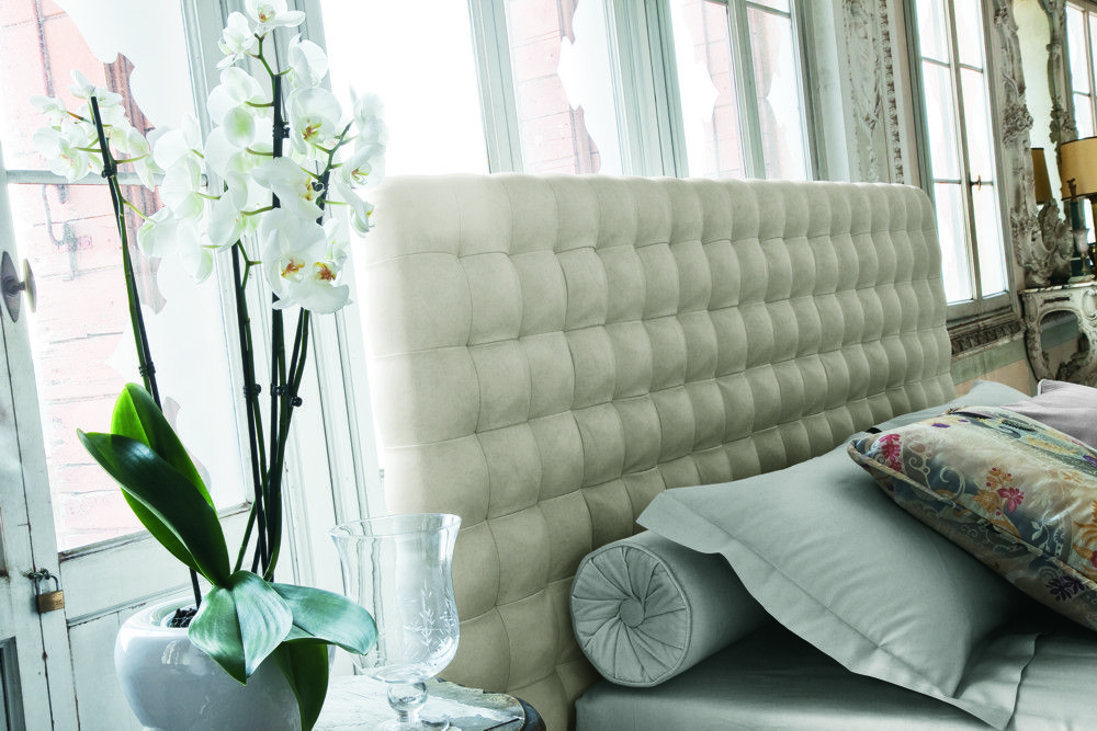Нежная, изящная спальня Bizet от компании Angelo Cappelini из Италии станет замечательной находкой для почитателей истинного комфорта и элегантной роскоши. Искусная ручная резьба обрамляет сложное, фигурное мягкое изголовье, служит окантовкой основе. Покрытие золоченой фольгой превращает ее в достойное украшение, придает нотки величия гарнитуру. Роскошная ткань обивки и пастельный светлый кремовый оттенок мебели идеально сочетаются друг с другом, обеспечивая спальне сладкую, волшебную негу уюта и тепла. Нежные цвета гарантируют спальне тот чудесный комфорт, который необходим для полноценного отдыха. -