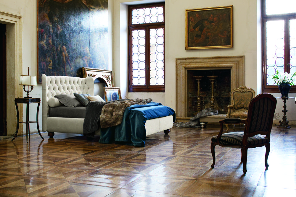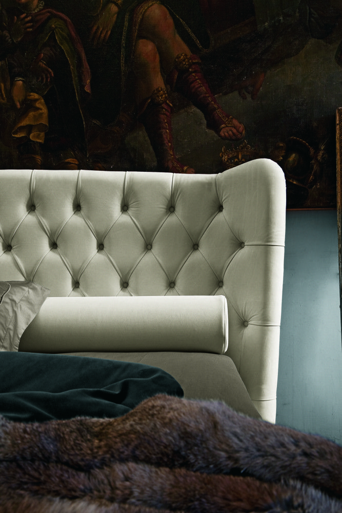 Роскошная спальня Cimarosa, созданная на итальянской фабрике Angelo Cappelini, станет оазисом комфорта в респектабельном, престижном доме. Достойным украшением, главным акцентом гарнитура является уникальное мягкое изголовье кровати. Нежные переливы на дорогой ткани обивки дополняет приглушенный загадочный блеск резной окантовки. Ручное кружево из дерева, созданное руками искусных мастеров, удачно дополняет теплый и нежный интерьер, вносит в него нотки шика, пришедшие из далекого средневековья. Спальня Cimarosa представлена в нескольких вариантах, что позволяет сделать отличный выбор, учитывая предназначение и особенности планировки комнаты. -