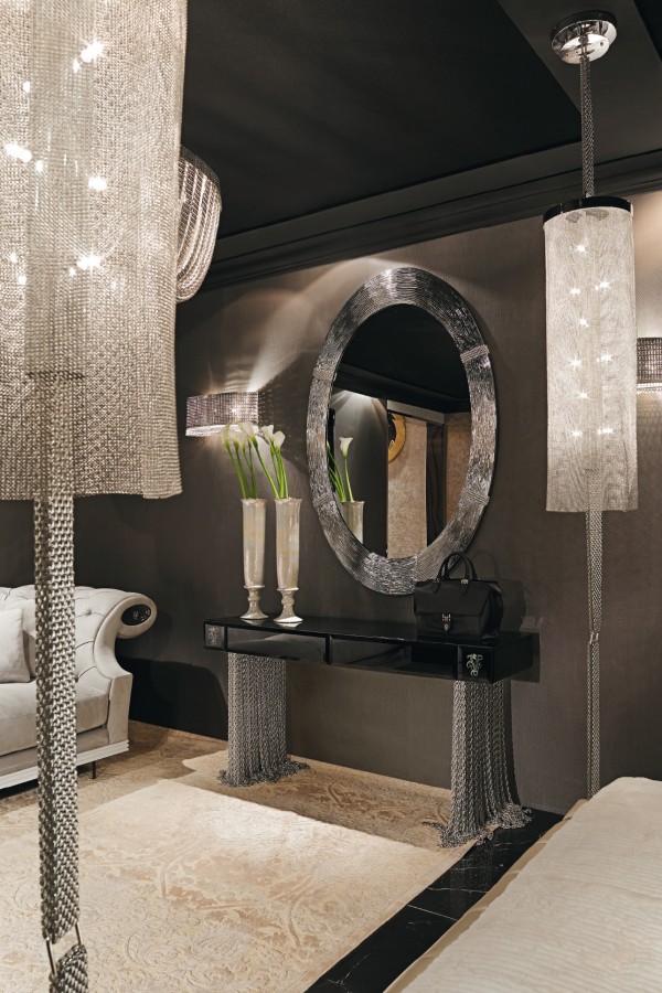 Эталоном классического стиля является спальня Liszt компании Angelo Cappelini из Италии. Строгие линии комода, столика-секретера, прикроватных тумбочек смягчает мягкая линия полукруглого изголовья, нежный блеск позолоты на тонких резных окантовках, роскошное обрамление изысканного мягкого стула и переливы на ткани его обивки. Величественную кровать удачно дополняют фигурные стойки, на которых покоится нежный балдахин, охраняющий сладкий сон. Глубокий коричневый цвет мебели, текстура дерева обеспечивают спальне идеальный комфорт и уют. -