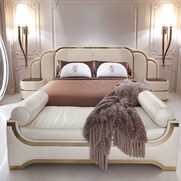 Идеальной гармонией классической элегантности и шика, присущего стилю барокко, отличается спальня Scarlatti от компании Angelo Cappelini из Италии. Глубокие шоколадные оттенки, продуманная конструкция каждого мебельного предмета, придают гарнитуру величавый, респектабельный вид. Замечательным дополнением мягкого изголовья и фигурного изножья кровати, ящиков и боковых панелей тумбочек являются сложные деревянные элементы ручной резьбы, покрытые серебряной фольгой. Элегантной роскошью отличается и оригинальный комод, который венчает фигурное зеркало, обрамленное резьбой. -