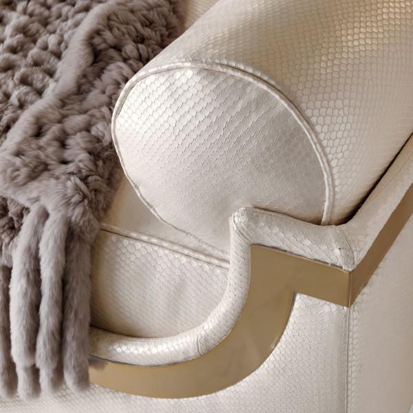 Добротная респектабельная спальня Copland итальянской фабрики Angelo Cappelini подарит истинное наслаждение любителям надежной, красивой мебели. Просторную, комфортную кровать венчают изголовье и изножье, обитые дорогой тканью, которая своими нежными переливами позолоты, растительными узорами располагает к приятному отдыху. Плавные контуры конструкций успокаивают, уносят в мир сладких грез. Резные элементы, дополняющие изголовье, изножье кровати, туалетный столик, тумбочки, комод, мягкий стул, покрывающая их позолота делают интерьер роскошным, превращают его в достойное украшение престижного дома.