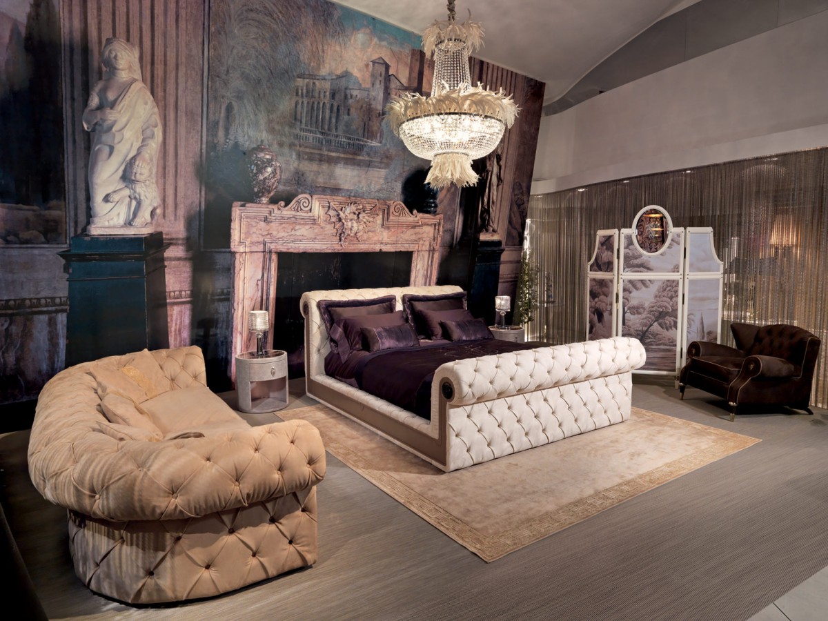 Изысканная спальня Borodin от известной итальянской компании Angelo Cappelini идеально украсит респектабельный особняк и стильную современную квартиру. Дизайнеры, создавшие этот шедевр мебельного ремесла, как и композитор, именем которого названа спальня, в нескольких предметах сумели отразить всю красоту итальянских традиций. Главным акцентом гарнитура является изысканная витиеватая ручная резьба, украшающая высокое изголовье кровати, ящики тумбочек, туалетного столика и комода. Нежный оттенок мебели, дорогой обивки изголовья и стульев гармонично подчеркивает блеск позолоты на резных элементах. Интерьер дарит невероятный уют и комфорт, создает чудесную атмосферу для расслабления и отдыха.