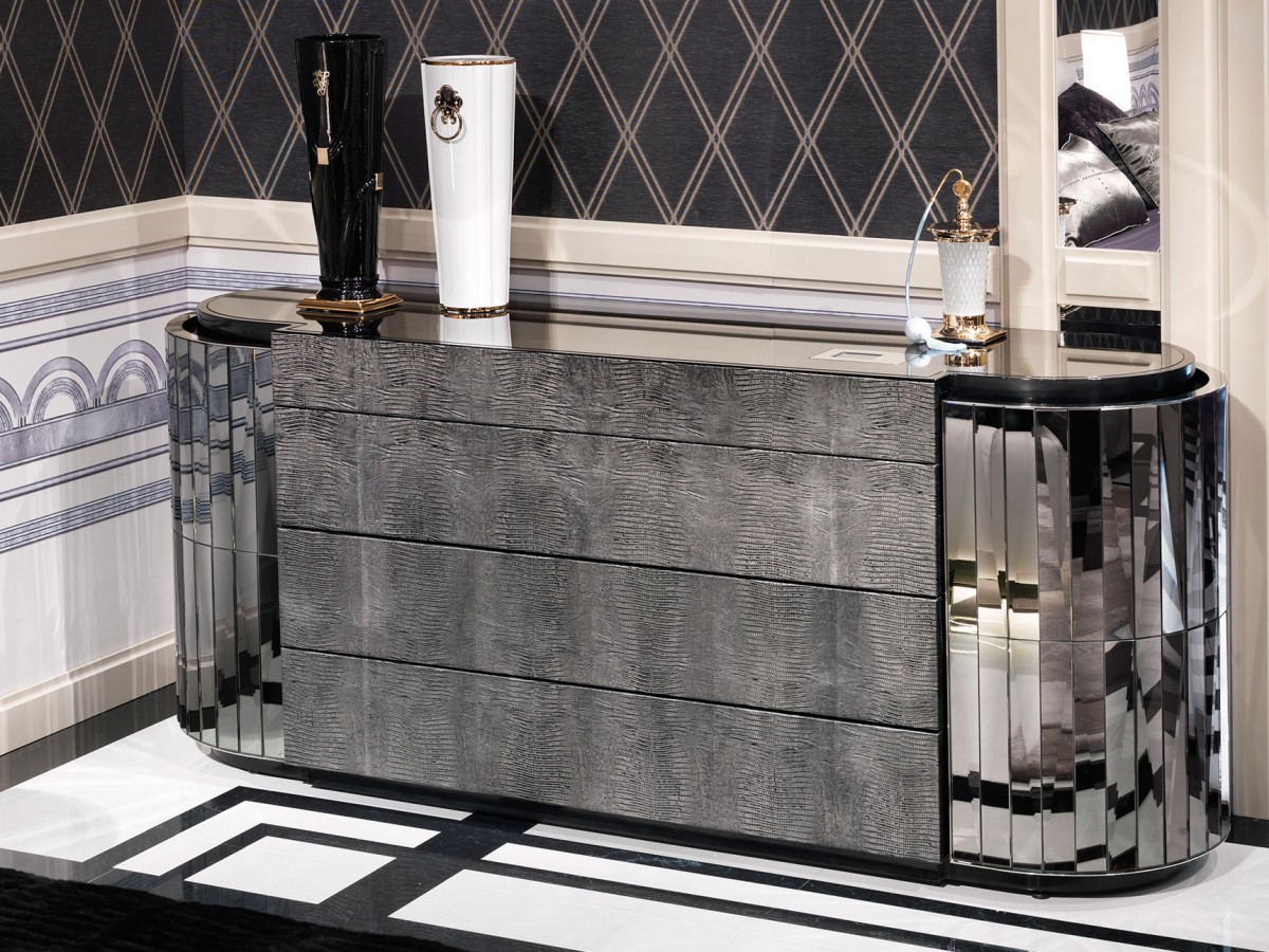 Роскошная спальня Cimarosa, созданная на итальянской фабрике Angelo Cappelini, станет оазисом комфорта в респектабельном, престижном доме. Достойным украшением, главным акцентом гарнитура является уникальное мягкое изголовье кровати. Нежные переливы на дорогой ткани обивки дополняет приглушенный загадочный блеск резной окантовки. Ручное кружево из дерева, созданное руками искусных мастеров, удачно дополняет теплый и нежный интерьер, вносит в него нотки шика, пришедшие из далекого средневековья. Спальня Cimarosa представлена в нескольких вариантах, что позволяет сделать отличный выбор, учитывая предназначение и особенности планировки комнаты. -