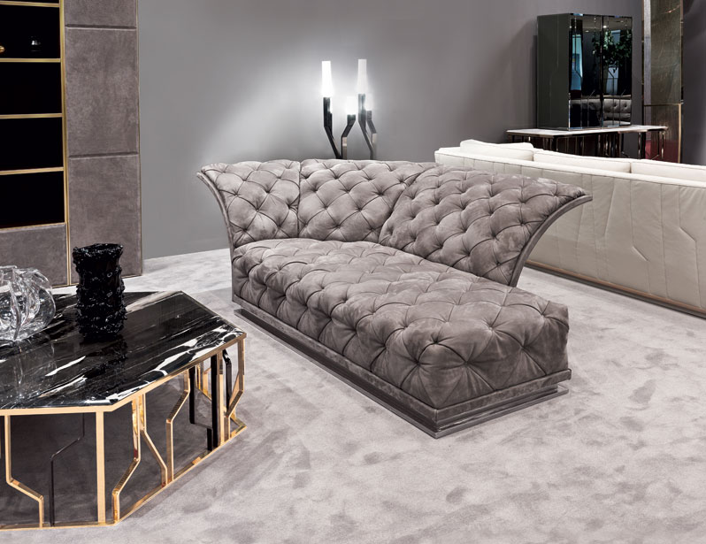 Сосновая рама с эластичной лентой, покрытой пенополиуретаном высокой плотности различной толщины. Подушки для сидения со стерилизованным гусиным пухом и вставкой пенополиуретана средней плотности. Анатомически спроектированные подушки для спинки наполнены стерилизованным гусиным пухом для большего комфорта. Темно-коричневые окрашенные деревянные ножк, полностью съемная тканевая обивка.