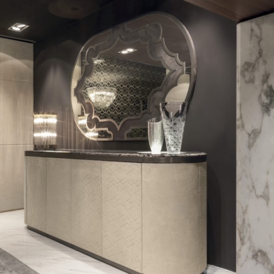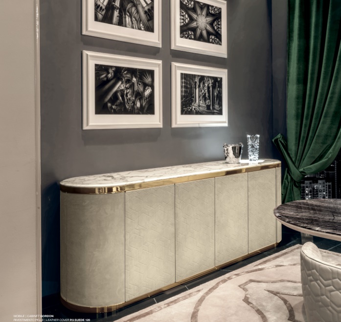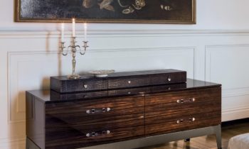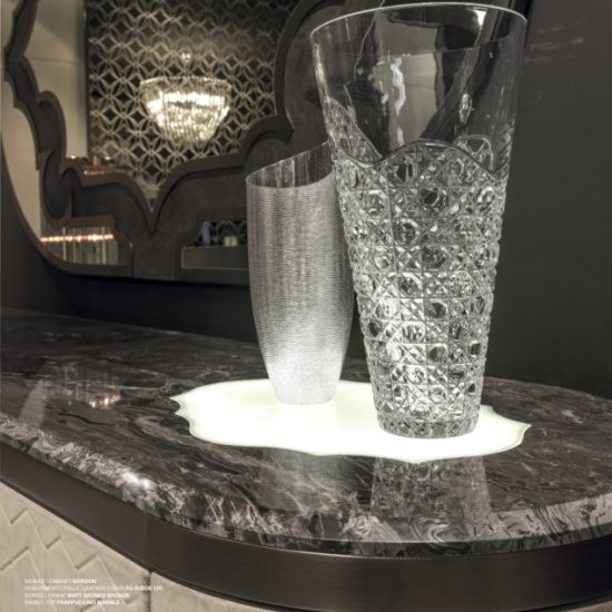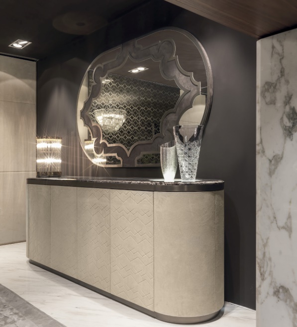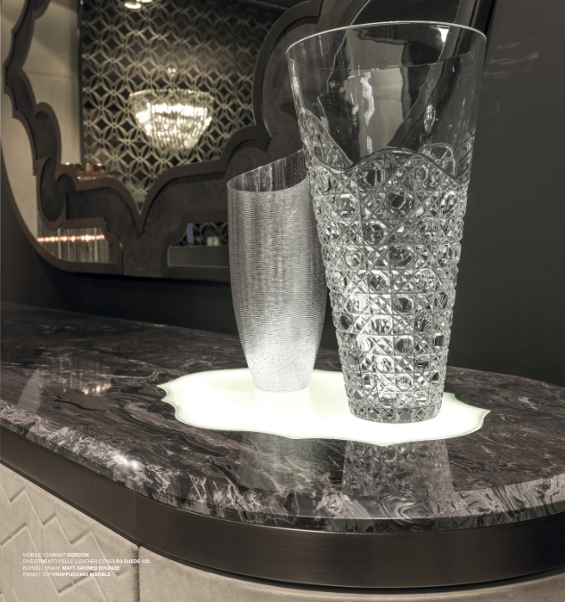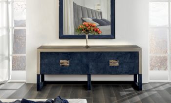 Мебель в тонах синего, глубокого и загадочного, как ночное небо, изящно интерпретирует оригинальные формы. Сумеречные краски вызывают в памяти атмосферу Прекрасной эпохи, дополняемую новым сиянием ценных металлов. Дом модернизирует свой облик в поисках изысканного стиля, основанного на геометрических фантазиях. -