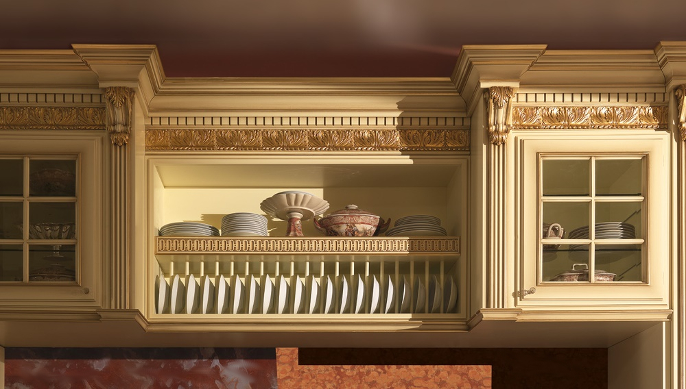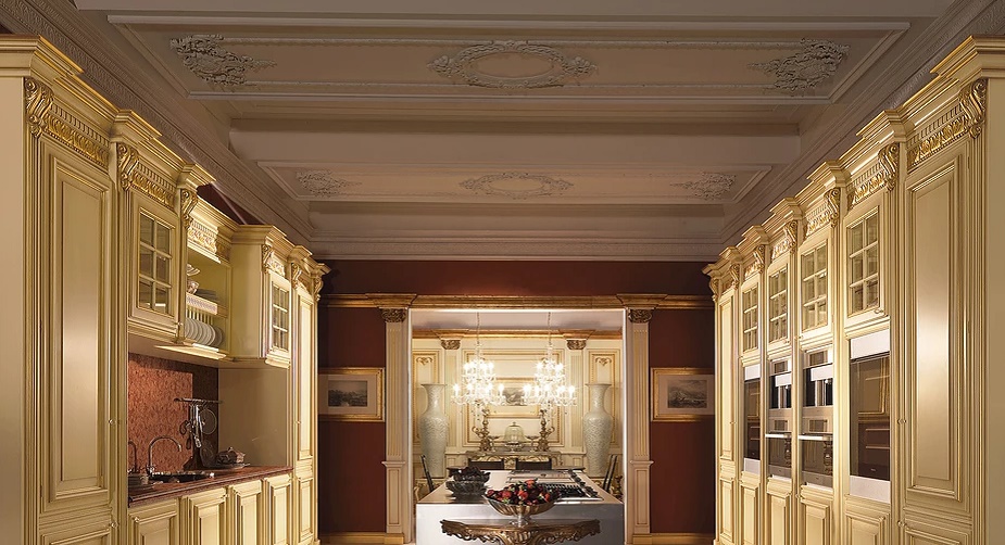 Только высококачественные материалы легли в основу производства изящной и роскошной кухни Princess Helen. Фабрика Boiserie Italia сделала акцент на высокий дворцовый классический стиль, поэтому использует массив дорогой древесины для каркаса и натуральный камень для столешниц. Дизайнеры подчеркнули элегантность гарнитура его цветовым решением. Невероятная ручная резьба от лучших мастеров в сочетании с позолотой выделяет уникальный дизайн фасадов. Кухня Princess Helen включает в себя удобные и большие шкафы с возможностью внедрения в них бытовой техники, а также комфортный стол-«остров». Такая модель по праву может считаться удобной и незаменимой.