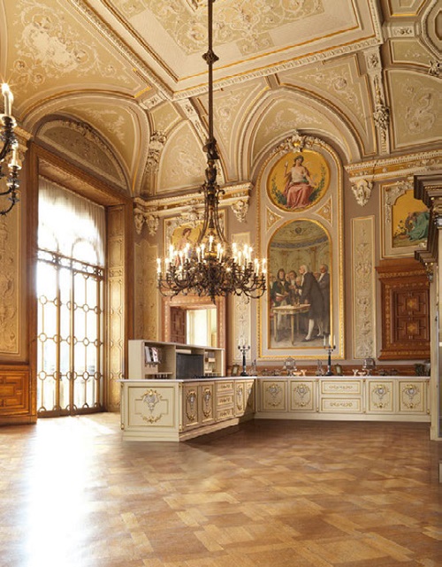 Классическая кухня Palazzo Giada от итальянской фабрики Boiserie Italia — словно глоток свежего воздуха в интерьере любого помещения. Дизайнеры сделали акцент на беспроигрышное сочетание белого цвета с золотой отделкой, который не только создаёт атмосферу эпохи XVII-XVIII веков, но и вносит простую элегантность в оформление мебели. Кухня Palazzo Giada изготовлена из лучших сортов древесины, что обеспечивает долгий срок эксплуатации гарнитура и сохранение эстетичного внешнего вида. Эта модель эргономична и удобна благодаря большому количеству шкафчиков и столу-«острову», столешница которого изготовлена из натурального камня. Главная особенность композиции — уникальные колонны, которые приближают дизайн кухни к дворцовому стилю. -