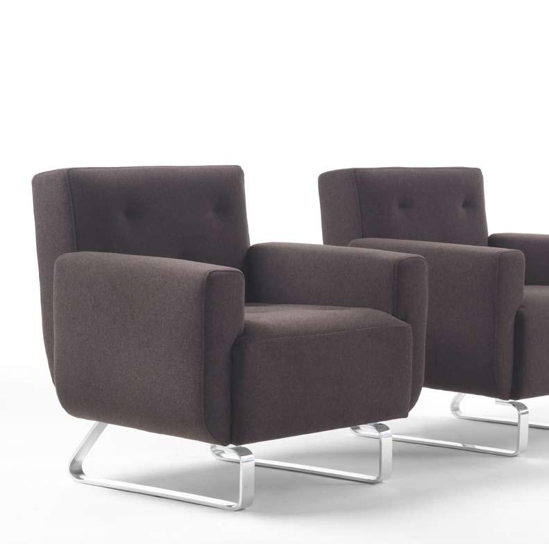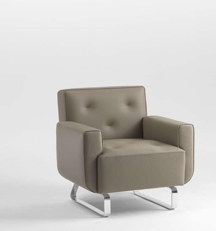 Кресло с подлокотником и спинкой из цельной древесины ясеня, подвергнутой профилированию и пантографированию на станках с ЧПУ и окрашенной в черный или коричневый норковый цвет материалами на водной основе. Форма отличается линейностью, чистотой и удобством, а удивительный блеск каркаса подчеркивает наиболее броские предметы мебели.