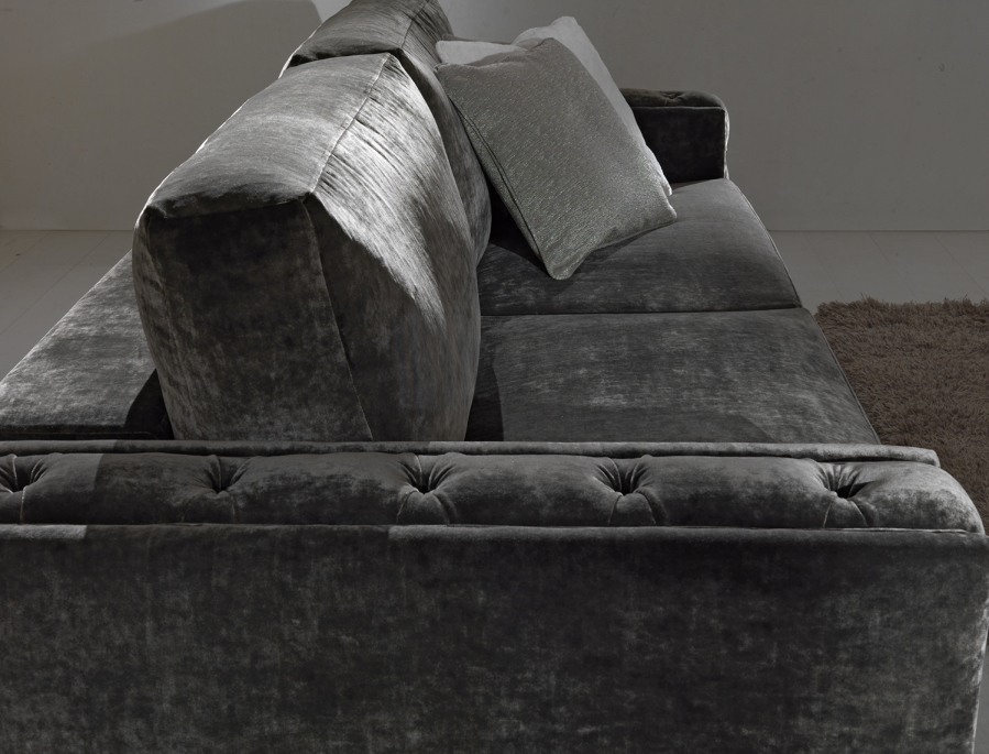 Сосновая рама с эластичной лентой, покрытой пенополиуретаном высокой плотности различной толщины. Подушки для сидения со стерилизованным гусиным пухом и вставкой пенополиуретана средней плотности. Анатомически спроектированные подушки для спинки наполнены стерилизованным гусиным пухом для большего комфорта. Темно-коричневые окрашенные деревянные ножк, полностью съемная тканевая обивка.