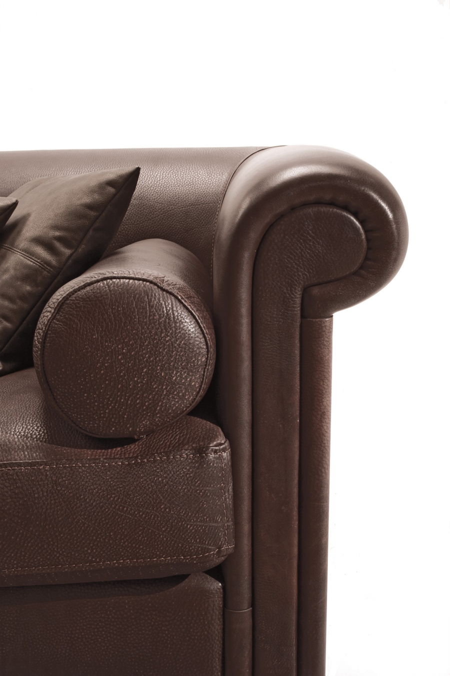 Сосновая рама с эластичной лентой, покрытой пенополиуретаном высокой плотности различной толщины. Подушки для сидения со стерилизованным гусиным пухом и вставкой пенополиуретана средней плотности. Анатомически спроектированные подушки для спинки наполнены стерилизованным гусиным пухом для большего комфорта. Темно-коричневые окрашенные деревянные ножк, полностью съемная тканевая обивка.